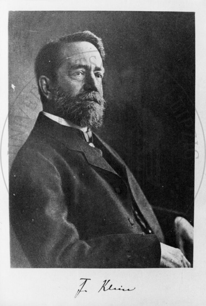 Bild links: Der Mathematiker Felix Klein, Porträt (Brustbild, sitzend, seitlich, um die 65 Jahre alt), Mathematik
